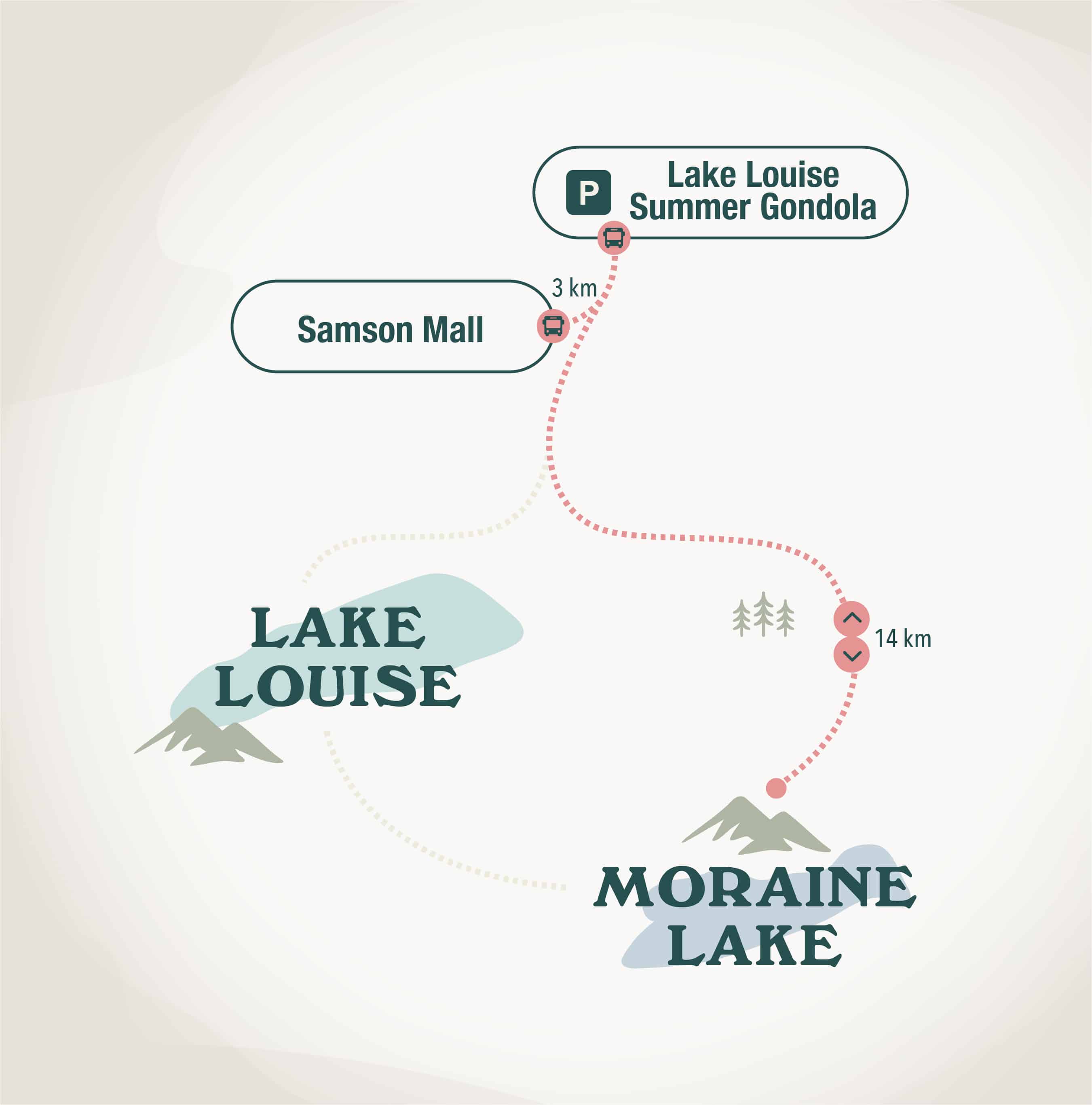 Option 2: Make two separate bookings for a ‘Direct to Moraine Lake’ and a ‘Direct to Lake Louise’ on the same day. These are perfect for the visitor who wants to hike or otherwise spend >1 hour at each lake.